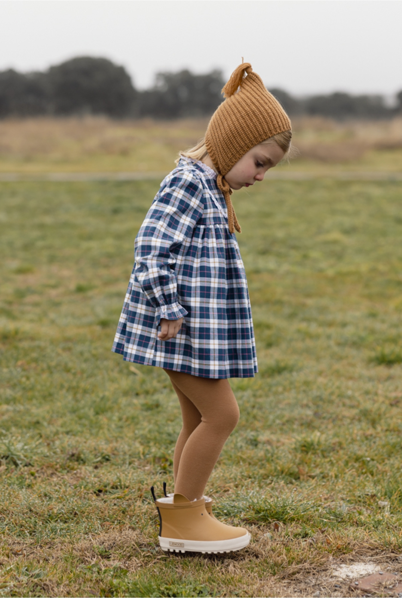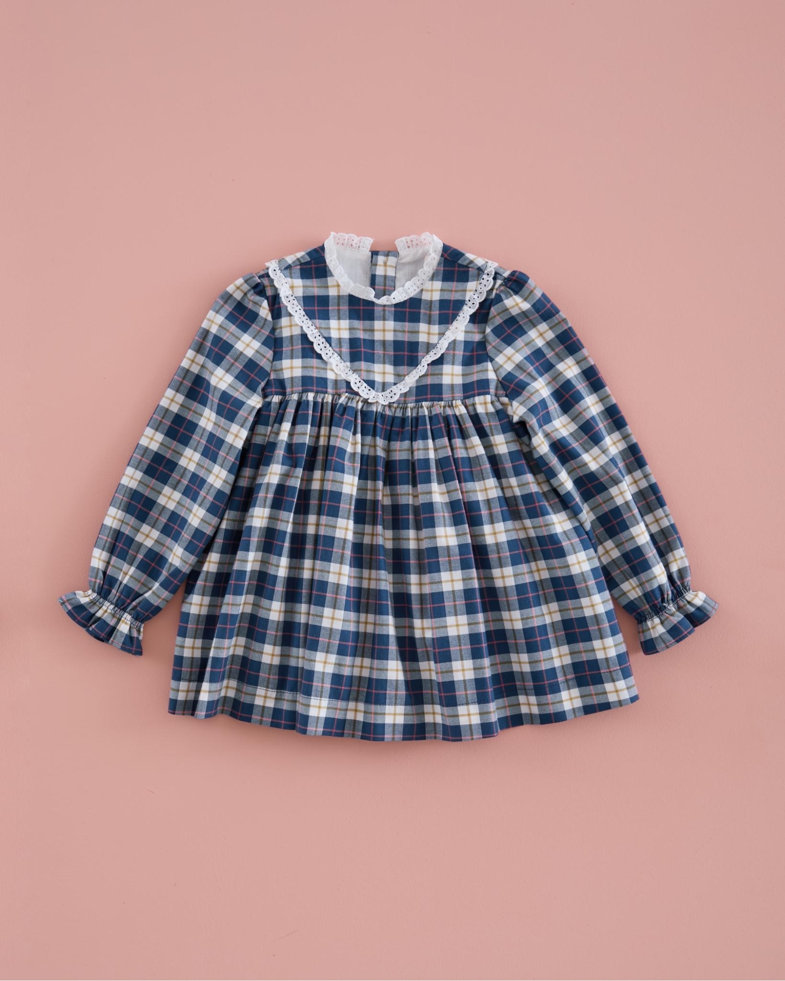 Confeccionado con tejido tartán. Abotonado en la parte trasera. Puño fruncido y elástico. Incluye braga hasta la talla 8 años.